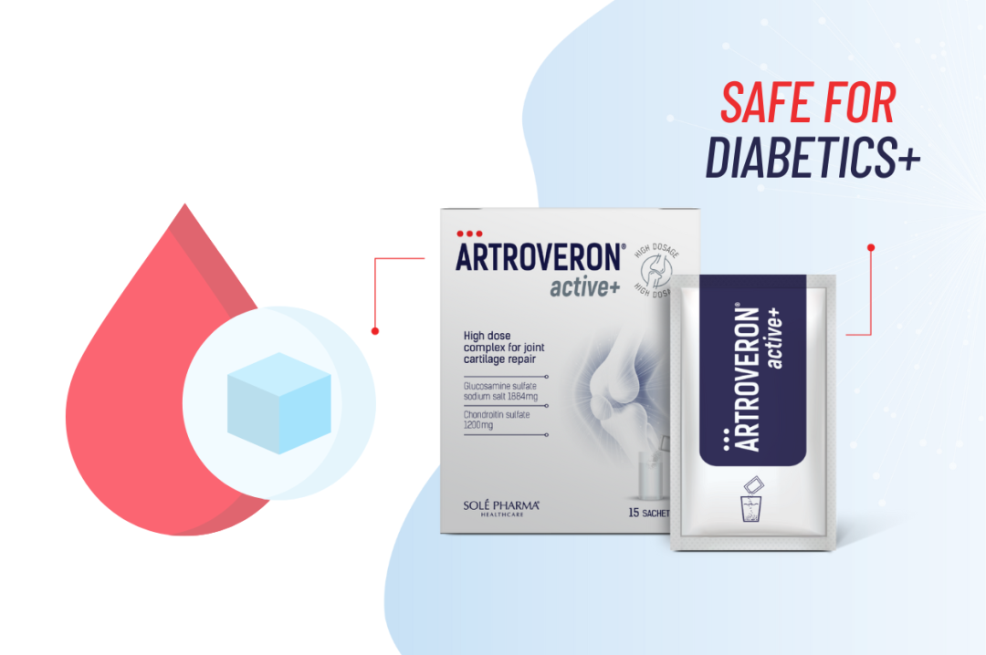 Artroveron® Active+ consists of high dose glucosamine and chondroitin sulfate. Glucosamine is one of the components of articular cartilage. Chondroitin is a natural polymer that is present in joint cartilage tissue and connective tissue. The lack of glucosamine and chondroitin can lead to degeneration of the cartilage.